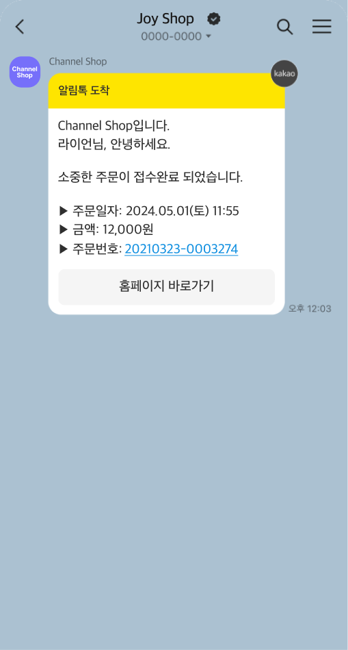 자사몰 회원 정보를 활용해 주문, 결제, 배송 등 상황에 맞춰 발송되는 정보성 메시지입니다.