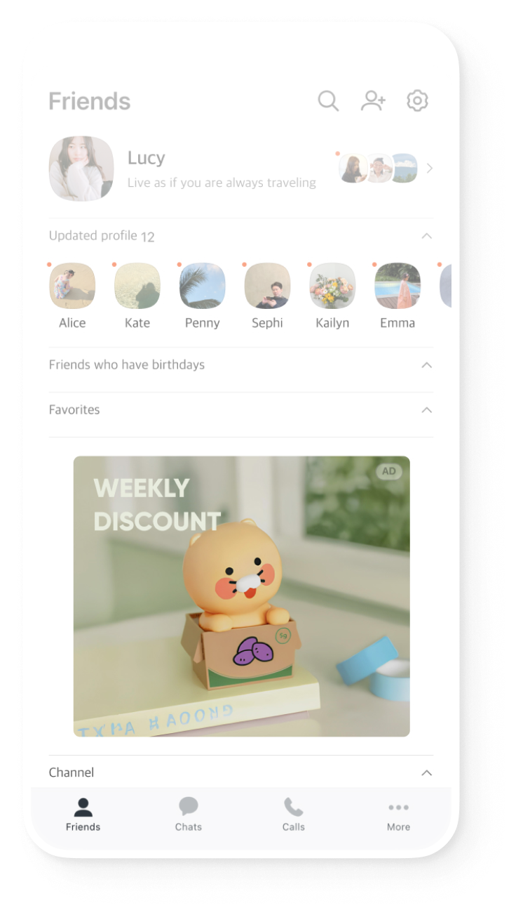 카카오 북미 광고는 고객을 가장 가까이에서 만날 수 있는 다양한 광고 채널을 제공합니다.