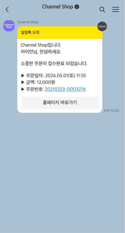 자사몰 회원 정보를 활용해 주문, 결제, 배송 등 상황에 맞춰 발송되는 정보성 메시지입니다.